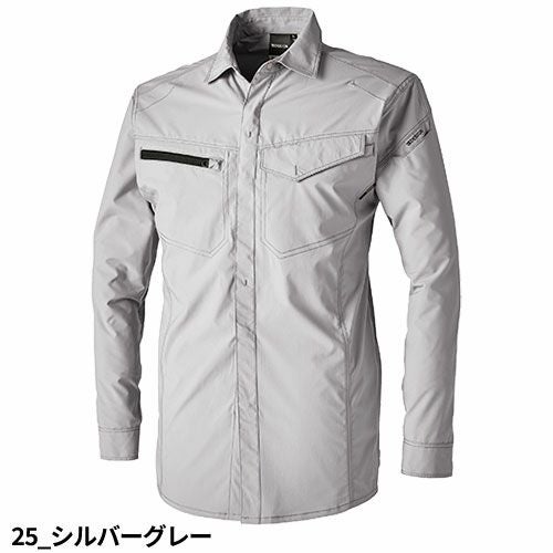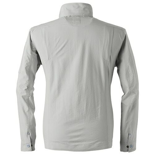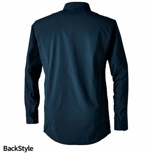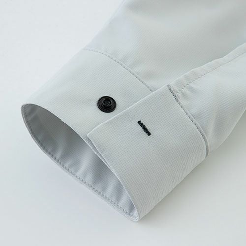 汗の水分で気化熱を促進する素材を使用身体をクールダウンさせるワークシャツ TSダブルクロスL(導電繊維混入)TS独自開発素材。汗をかいた際に気化熱を促進し、素早く乾かして身体の熱をクールダウンさせる働きを持つ。点接触で肌に当たる面積を少なくし、ベタつきを抑える。リサイクル糸を20%使用し、エコの側面を持つ。透け防止、UVカット、SR(防汚)加工、帯電防止の機能を併せ持つ。