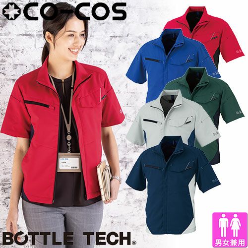 作業服 ブルゾン コーコス信岡 CO-COS BOTTLE TECH エコストレッチ半袖ブルゾン AE-8090 作業着 春夏 エコマーク 再生ペットボトル SDGs カーボンオフセット UVカット 帯電防止 男女兼用