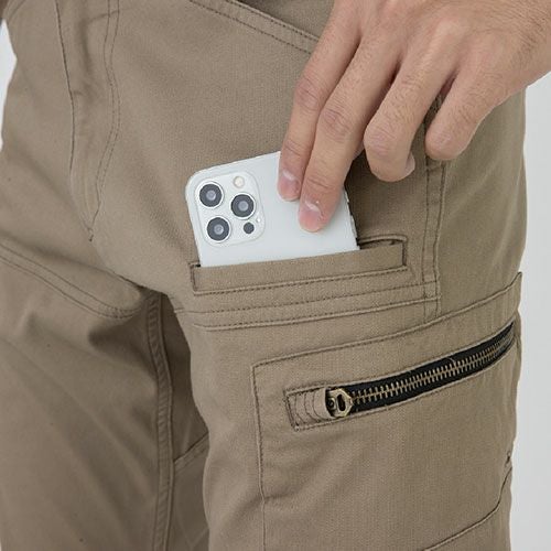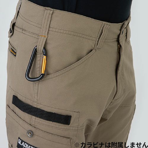 ユーロスタイルテイストを入れた新シリーズ「GLADIATOR EUROS」ストレッチ素材で動きやすくカーゴポケットには工具をちょい差しできる万能な「ギアハンドル」を装備 ■道具をちょい差しできるギアハンドルワーク・アウトドア・DIYなどシーンに合わせて使い方は自由自在長いものをポケットに入れても安定する「ちょい差し機能」が便利