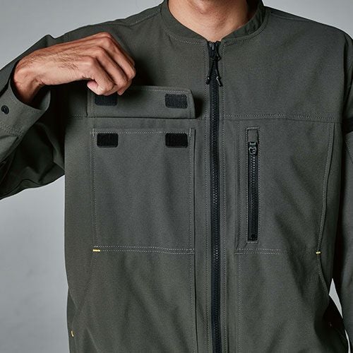 環境に優しい植物由来制電対応T/Cストレッチ ストレッチ性に優れたエコロジー素材『Sorona』を使用し、20%を超える高い伸長率で動きやすく、フラットに仕上げることでヒンヤリとした着心地を実現しました。帯電防止作業服JIS T8118にも適合し様々な職種で安心してご着用いただけるシリーズです。