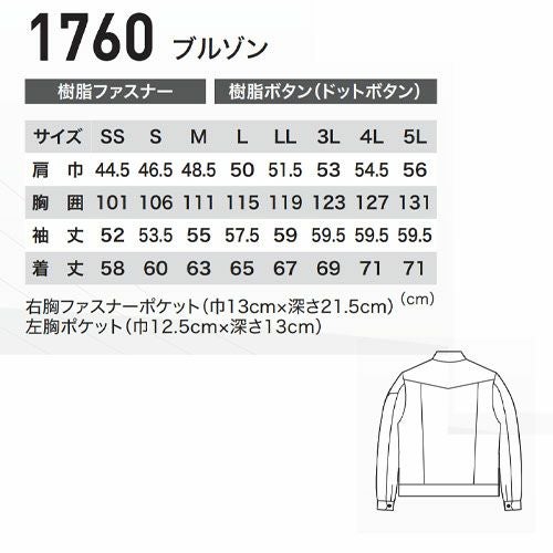 作業服 ブルゾン ジーベック エコTCストレッチブルゾン 1760 作業着 通年 秋冬 男女兼用 ユニセックス メンズ レディース 帯電防止 温かい 軽い エコ素材 長袖 上着 黒 ブラック 紺 ネイビー 灰 グレー スポーティ かっこいい 屋外作業 釣り