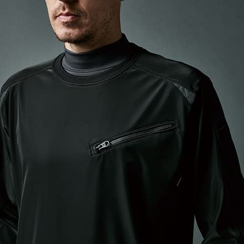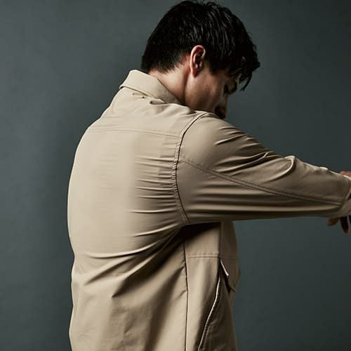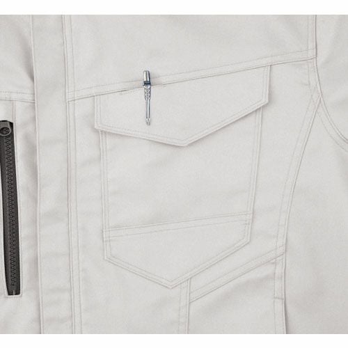 汗をかきやすい夏の現場でも新素材がべとつき防止。ストレスを感じにくい、働きやすさも考慮したシリーズです。 背メッシュ仕様が暑い時期にはうれしい仕様。両袖にはペン差し付き、左胸には野帳対応ポケットなど実用性にも考慮されています。