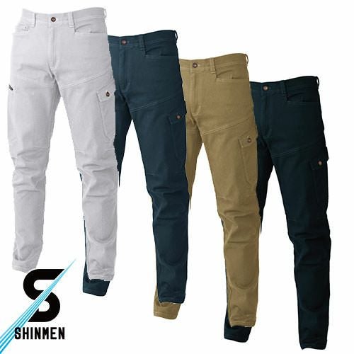 カーゴパンツ SHINMEN シンメン ストレッチ 帯電防止 綿 スリム ワークパンツ 作業着 作業服 作業ズボン パンツ スラックス おしゃれ 人気 安い かっこいい おすすめ ワーク マン メンズ ワークウェア 通年 秋冬 オールシーズン 2902