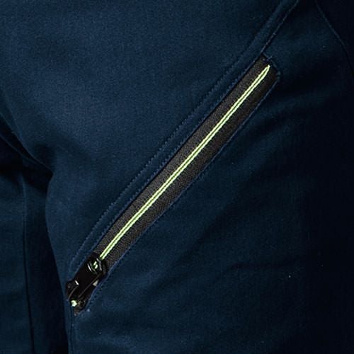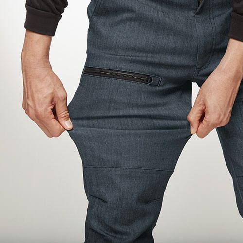オールシーズン対応可能な綿リッチなストレッチ素材 綿高混率のストレッチCVC素材を立体裁断することで可能にしたスリムでも動きやすいスタイリッシュなワーキングウェア
