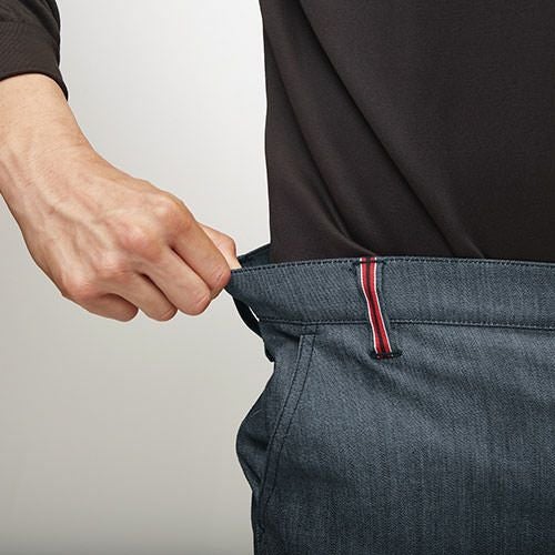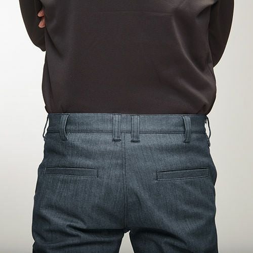 綿混の肉厚でソフトな着用感と伸縮率30%の優れたストレッチ性を両立する高機能素材。摩擦や日光による退色が少なく製造過程での環境への影響も少ない「黒原着糸」を仕様。 ウエストストレッチ構造でストレスフリー。黒原着糸を使用し環境への配慮した伸縮率30%のストレッチパンツ。