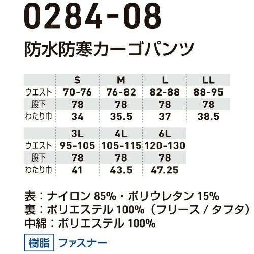 作業服 カーゴパンツ 桑和 SOWA ストレッチ防水防寒カーゴパンツ 0284-08 作業着 通年 秋冬作業着 作業服 カーゴパンツ おしゃれ かっこいい 人気 ズボン 作業ズボン 作業パンツ 作業 工事 土木 塗装 DIY diy
