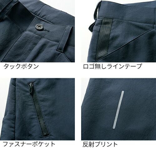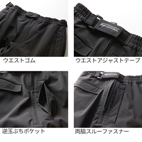 スポーツシーンでも着用できる動きやすさを追求した軽量カーゴパンツ ・信頼の日本製軽量ストレッチダブルクロスを使用・動きやすさを追求した高いストレッチ性・東レライトフィックスによる軽くて伸びる快適な着心地・不快なニオイを軽減するデオドラントテープ付き・マスク加工(シワ加工)を施したカジュアルライクな表面感・反射プリント使いによる高視認性・制電性素材で静電気の発生を抑える
