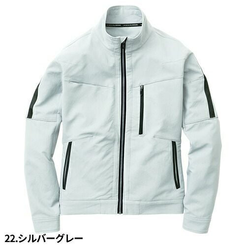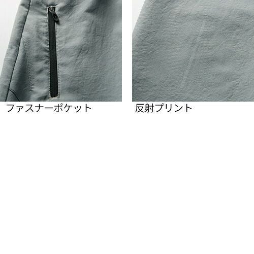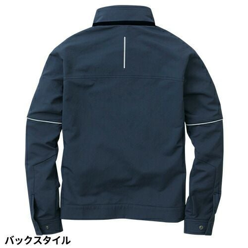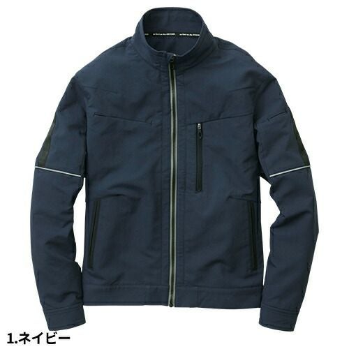 従来のワークウェアと一味違うデザイン性とストレッチ性を兼ね備えたスポーツテイストの軽量ブルゾン ・信頼の日本製軽量ストレッチダブルクロスを使用・東レライトフィックスによる軽くて伸びる快適な着心地・マスク加工(シワ加工)を施したカジュアルライクな表面感・動きやすさを追求した高いストレッチ性・制電性素材で静電気の発生を抑える・不快なニオイを軽減するデオドラントテープ付き・反射プリント・反射パイピング使いによる高視認性