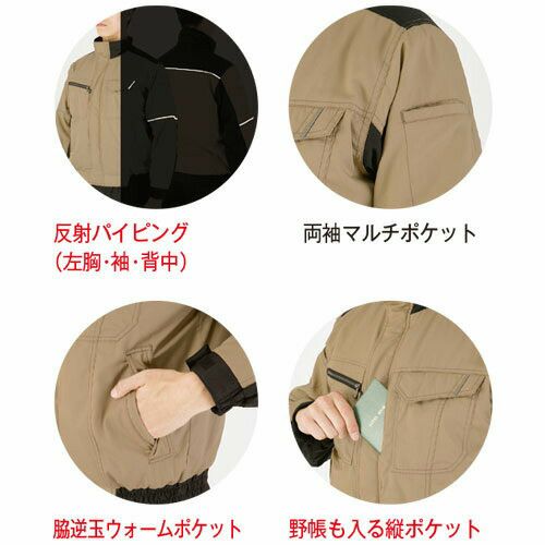 マルチ機能を搭載した多機能作業服。バイカラーデザインで上下別色のコーディネートもできます。