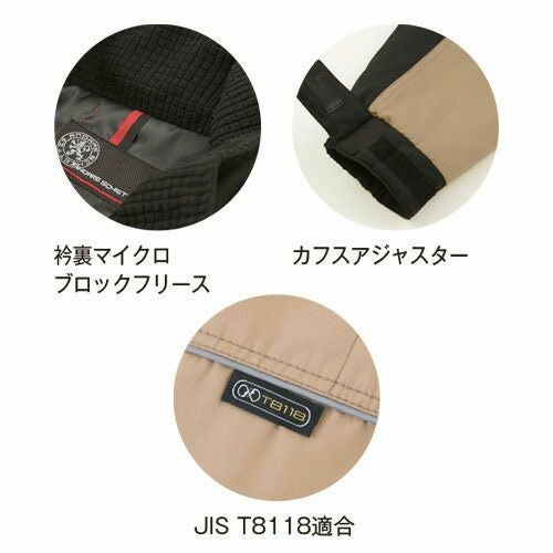 シルエットの美しさを保ちつつ機能を充実させた本格防寒ギアに仕上げ。帯電防止・エコ素材を使用し寒さの厳しい現場作業にも最適。