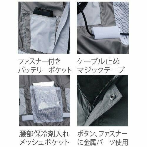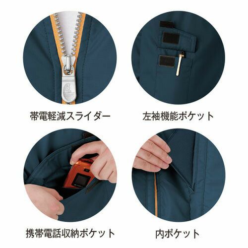 フルハーネス対応(墜落制止用器具対応)仕様!安全性と快適さを両立させた多機能タイプ。 綿高密度織だから生地の風漏れを防ぎ綿の爽やかさと風の流れを確保。脇下部分はメッシュ仕様になっており風が体全体を駆け巡り涼しさがUPします。さらに、YKK クイックフリーファスナーを採用!左右に引っ張ると簡単に外れるから、ハーネスの上からEFウエアを着た場合、墜落時における首を絞めつける危険性を解消します。※クイックフリーファスナーのスライダー部分は「左右非対称」となっているのが正常な形状です。(分離機能のないスライダーは左右対称です。)