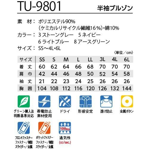 作業服 ブルゾン タカヤ商事 TAKAYA 半袖ブルゾン TU-9801 作業着 春夏作業着 作業服 ブルゾン 春夏