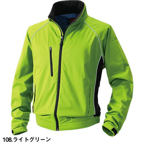 スリムスタイルにストレッチ性をプラス!再帰性反射材で着用者をサポートするスタイリッシュワークウェア!! 上下色違いでコーディネイト可能スリムシルエットでスタイリッシュな印象に■傷つけ防止設計ファスナーとボタンなどの露出を抑えて商品への傷付けを防止■再帰性反射パイピングブルゾンの左袖・両脇切替部と、パンツの両腿・ヒザ部後身頃に再帰性反射パイピングを使用