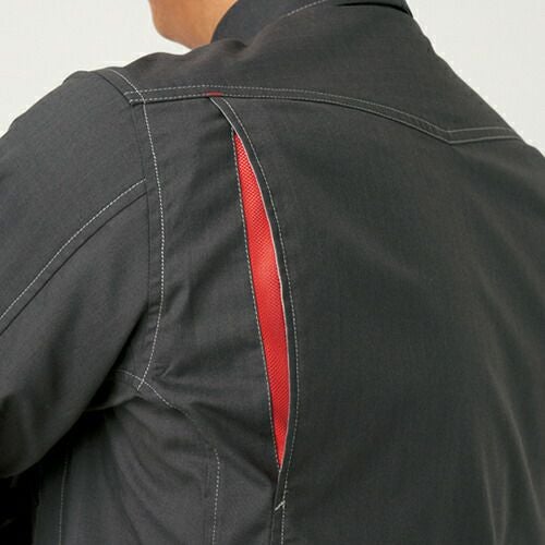 シャープな風合いのオックスフォード織り、そしてシンプルで機能的なシルエット。強さと知性が同居する世界に、赤いアクセントが情熱を添える。機能的でありながら、パンツやカラーを選べるなど完成度の高いスタイリングが特徴です。 同シリーズのブルゾンが持つ、知的なデザイン性と機能性はそのままに、春夏シーズンに適した待望の長袖シャツが新登場。室内だけでなく、作業現場にも対応する強度も自慢のひとつです。