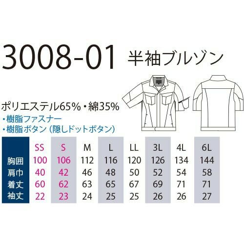 作業服 ブルゾン 桑和 SOWA 半袖ブルゾン 3008-01 作業着 春夏作業着 作業服 ブルゾン 春夏