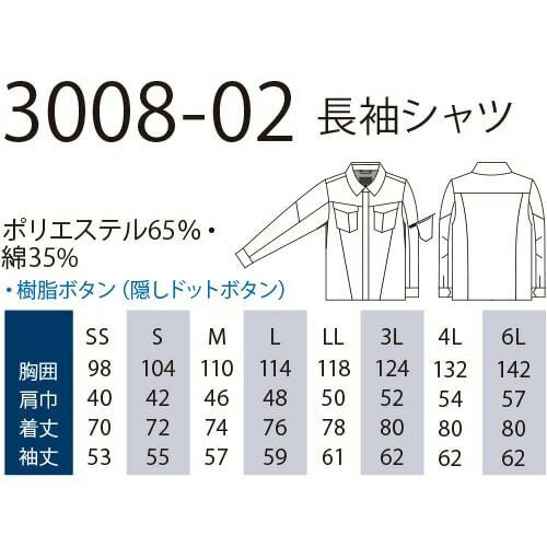 作業服 長袖シャツ 桑和 SOWA 長袖シャツ 3008-02 作業着 春夏作業着 作業服 長袖シャツ 春夏