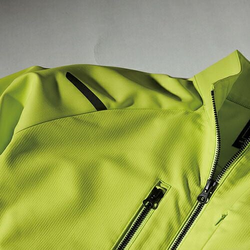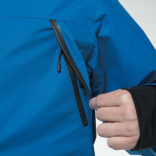 耐水圧5,000mm、透湿2,000g/m2/24hrでオーバースペック過ぎない現場にフィットしたスペック 胸元のプリズム反射ワッペン、胸ポケットのシームテープ使い、防水リップストップの生地感もかっこいい!COLOR LABにリンクしたカラーが使いやすく、スタイリッシュな形で着こなしの幅がより広がる。