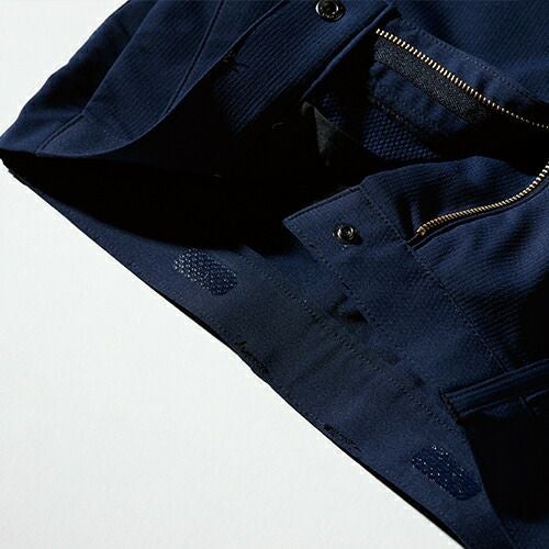 夏でも快適な着心地を実現する素材と衣服内のムレを軽減するノーフォークメッシュを採用 ドビークロスの地模様の連続によって表現される「ドビーストライプ」適度な張りがあり、シワになりにくい軽くて通気性が良く、汗をかいてもすぐ乾く伸びる素材で静電気もおきにくい、着心地爽快なストレッチユニフォーム