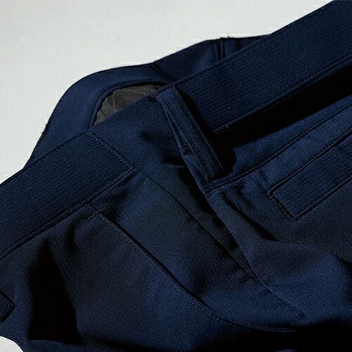 すっきり穿けるNEWピタリティ シンプルデザインのブルゾンに対応したノータック仕様のすっきりシルエットのスラックス。ウエスト帯の両サイド内側に新二重ゴム構造のNEWピタリティウエストゴムを採用し、見た目スッキリ、穿き心地ラクラク。