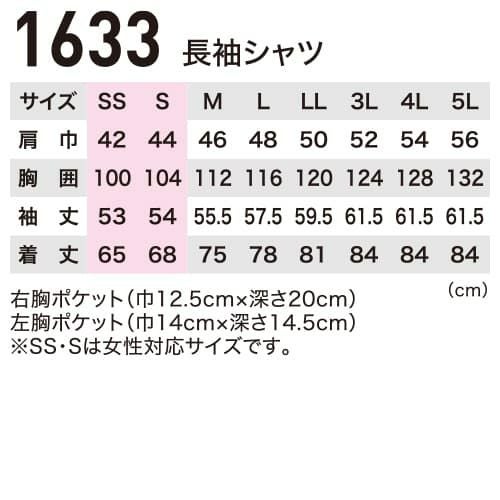ジーベック XEBEC 1633 長袖シャツ 通年 秋冬用 メンズ レディース 男女兼用 作業服 作業着 定番