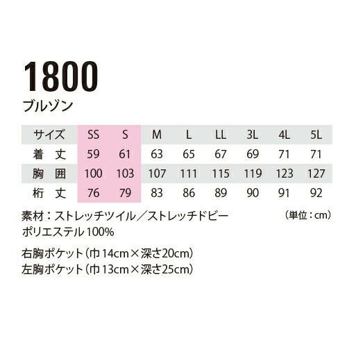ジーベック 作業着 作業服 ブルゾン 1800 通年 秋冬 上着 おしゃれ かっこいい 人気 企業 法人 作業 工場 外作業 ワークユニフォーム 仕事 土木 工事 現場