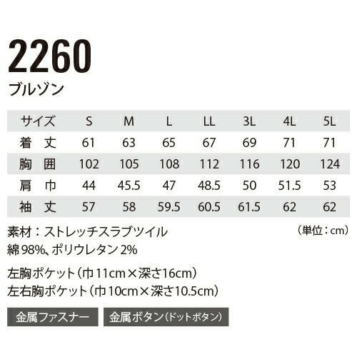 ジーベック 作業着 作業服 ブルゾン 2260 通年 秋冬 上着 おしゃれ かっこいい 人気 企業 法人 作業 工場 外作業 ワークユニフォーム 仕事 土木 工事 現場