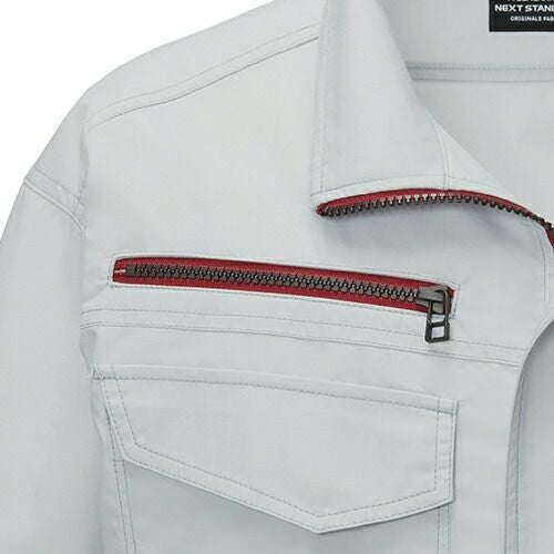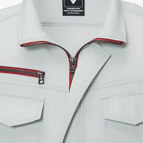 炎天下での作業に快適! 遮熱効果、吸水速乾、透け防止、UVカット、体感-2度の機能素材。オーソドックスなデザインだが配色ファスナーがアクセント。カラー展開も定番の3色でどんな業種にもお勧めのシリーズ。ハーネス対応タイプも同一デザインで展開されるシリーズで建設現場や電気工事系にもお勧めです。