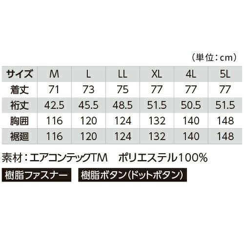 空調服 長袖ブルゾン(ファン無し・男女兼用) AZ-1799 AITOZ アイトス 作業着 作業服 春夏 涼しい 快適 猛暑対策 熱中症対策 上着 ジャケット 長袖 扇風機 作業服 工事 土木 土建 建設 外作業 炎天下 春夏 メンズ 男性用 涼しい 清涼感