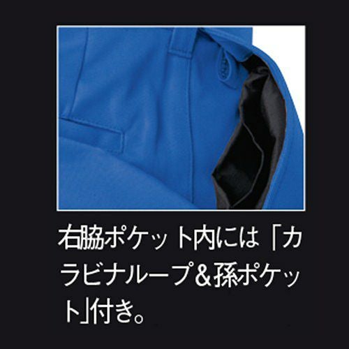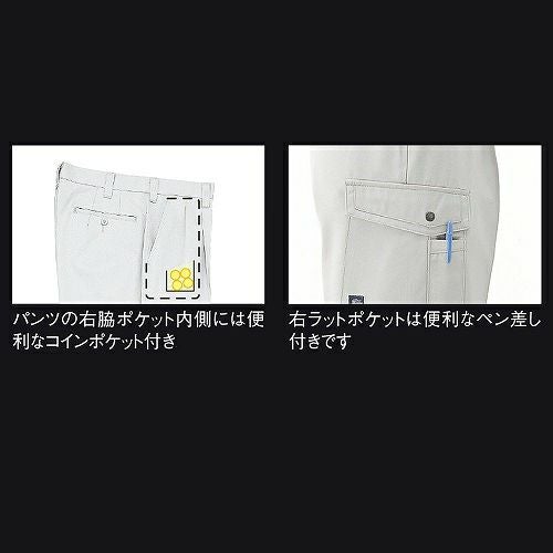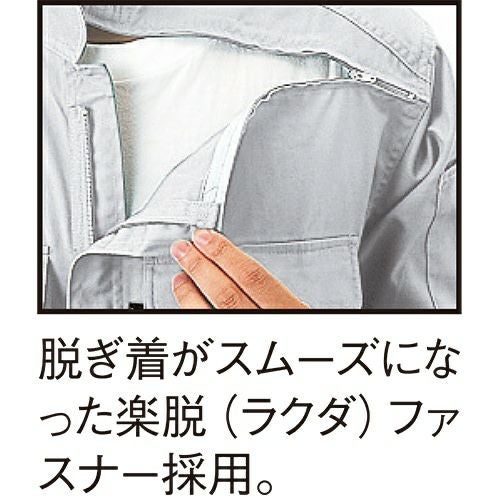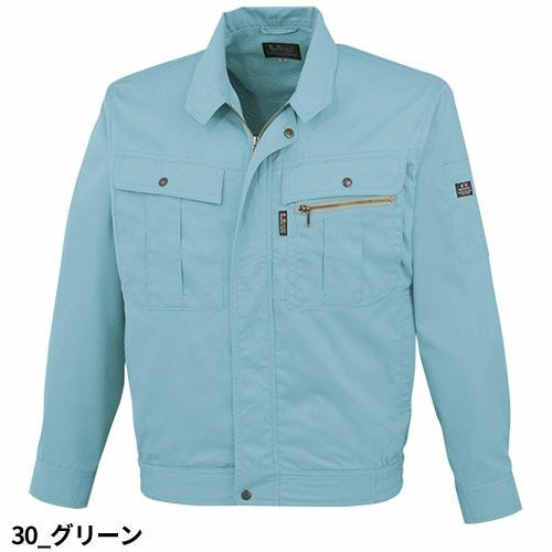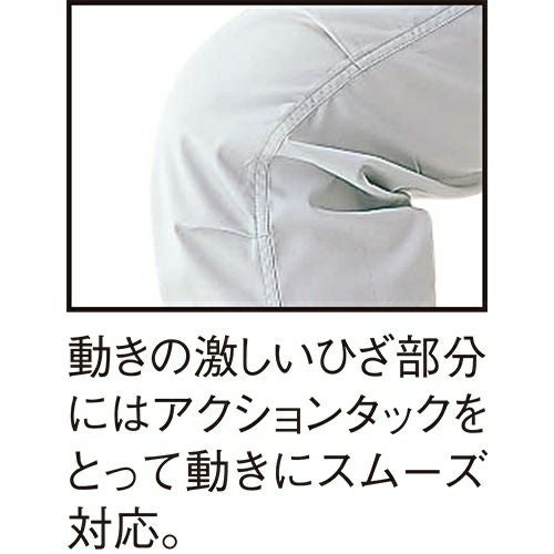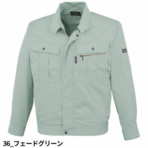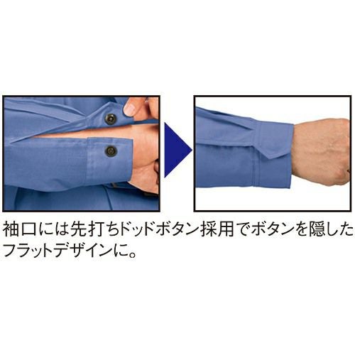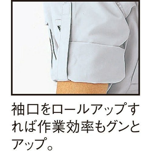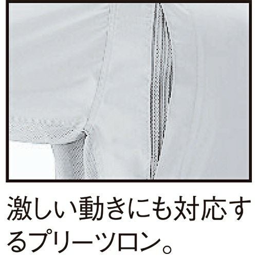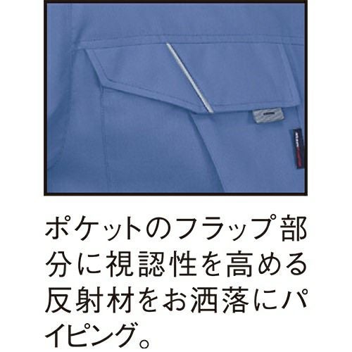 爽やか素材&動きスムーズ!! 非対称デザインの胸ポケットがオシャレ度をアップ。通気性の良い校倉造り構造素材+脇下メッシュ素材で軽快に。脇下に施した特殊カッティングが背中のプリーツと連動して滑らかな腕の動きをサポートするスムーズアップ機能装着。土木・建築から運送・工場と幅広い職場に対応します。