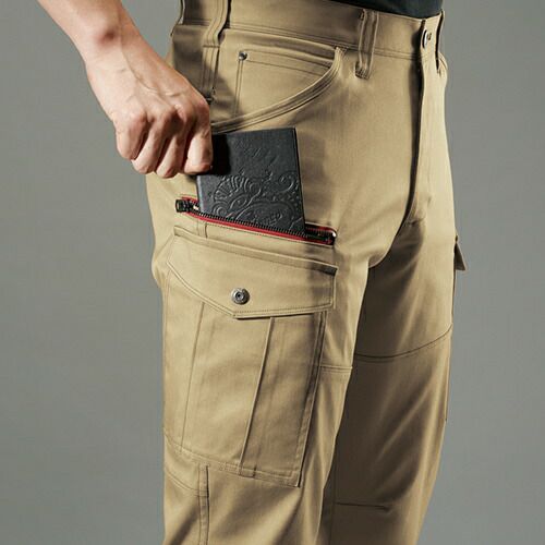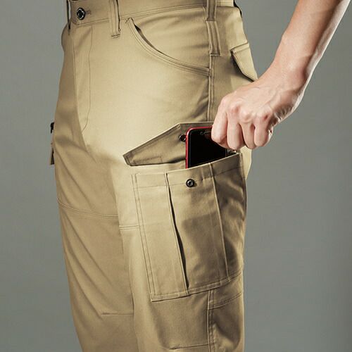 ハイブリッドコットン使用 進化形作業服 上質ハイブリッドコットンのソフトな風合いに、シンプルデザインとミリタリーテイストのカラーが醸し出す精悍な男っぽさで人気の定番シリーズ。二重ポケット仕様の胸のフラップポケットをはじめ、機能性と収納性に優れた多彩なポケットが作業現場をサポート。