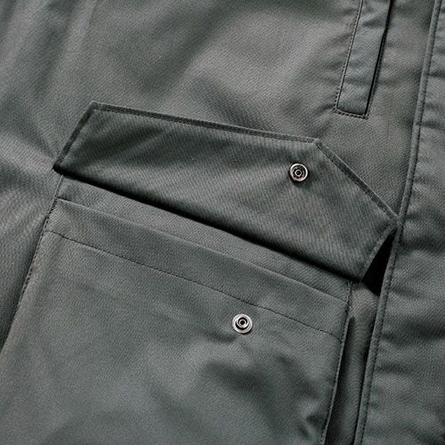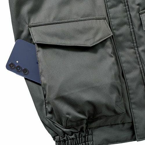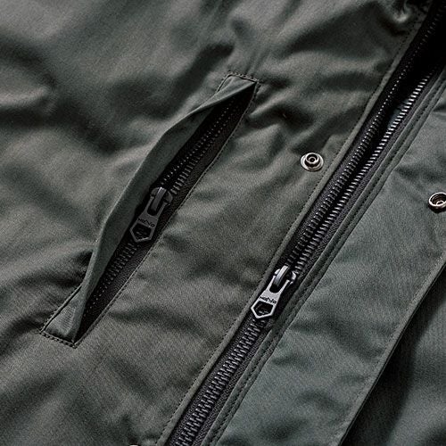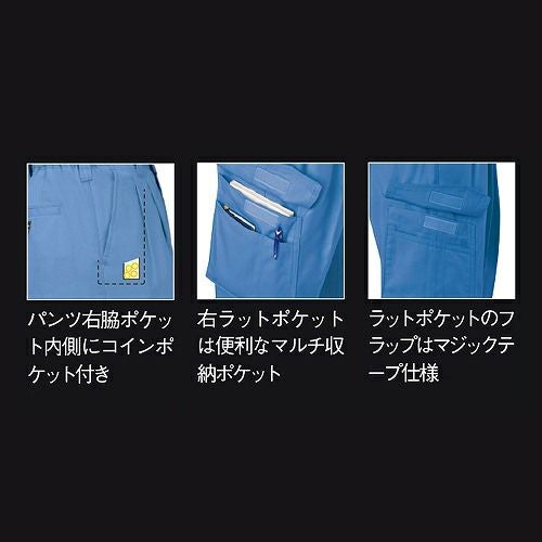 逆立ちしても物が落ちない! 立体裁断で腕の動きをスムーズにするNEWバンザイカットに、さらに動きやすく進化したNEWプリーツロンを採用。落下の心配がないファスナー付き5ポケット仕様で収納力もアップして、タフな現場から工場作業までオールマイティーにサポートします。