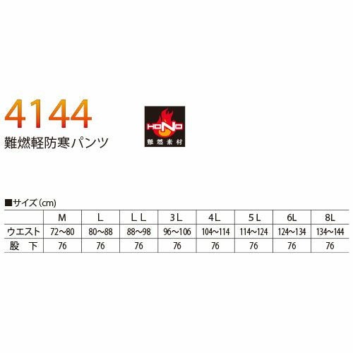 防寒パンツ 村上被服 鳳皇 HOOH 難燃軽防寒パンツ 4144 作業着 防寒 作業服 綿100% 燃えにくい 耐炎 耐熱 制電 保温 溶接 鋳造 製鉄 消防 化学プラント ガソリンスタンド 火 職人 タフ 丈夫 機能性 シンプル カッコいい 粋 現場 アウトドア キャンプ