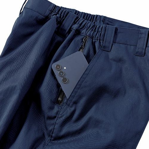 動きやすいツータックのシルエットと実用的なバックポケット&サイドポケット特にファスナー仕様のポケットは作業に集中させる確かさ多彩なカラーバリエーションを備えているので、上衣とのコーディネートも自由自在です。