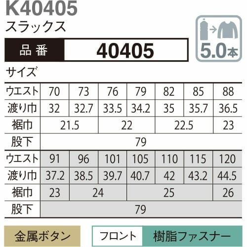 作業服 パンツ スラックス 大川被服 kansai uniform カンサイユニフォーム K44405 44405 作業着 春夏