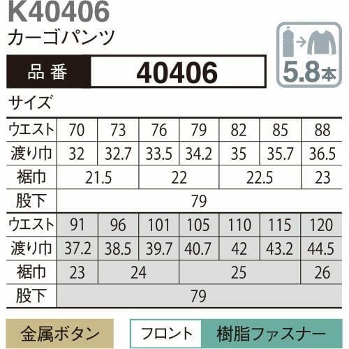作業服 カーゴパンツ 大川被服 kansai uniform カンサイユニフォーム K44406 44406 作業着 春夏