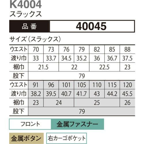 作業服 パンツ スラックス 大川被服 kansai uniform カンサイユニフォーム K4004 40045 作業着 春夏
