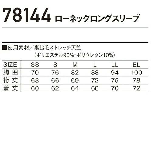 7. 防寒 インナー 長袖 自重堂 吸湿 発熱 吸汗 速乾 Z-DRAGON ストレッチ 消臭 抗菌 抗菌テープ ローネックロングスリーブ 冬 冬用 暖かい 男女兼用 ユニセックス 防寒着 防寒服 作業着 作業服 78144