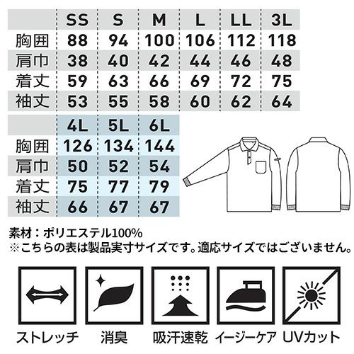 他の画像を見る 長袖 ポロシャツ 作業服 作業着 シャツ 桑和 SOWA 7335-50 春夏 胸ポケット ストレッチ シンプル 無地 紫外線対策 ワークウェア ワークシャツ 人気 制電 吸汗 速乾 ドライ メンズ レディース おしゃれ オシャレ かっこいい 特別価格 ¥ 2,541 税込 〜 特別価格 ¥ 税込 持続可能な未来と安全のために制電糸入り再生ポリエステル糸を使用!豊富なカラーバリエーションと配色で理想のユニフォーム。 詳細を見る お気に入りに登録する