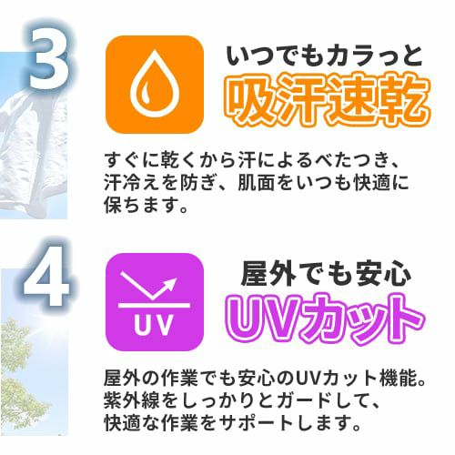 他の画像を見る EFウェア 半袖 大川被服 MHAK 空調風神服フード付き7分袖ヤッケ 00300 2023年モデル MK-300 作業着 作業服 春夏 猛暑 猛暑 熱中症 暑さ対策 涼しい 電動ファン 扇風機 UVカット フード付 保冷剤用ポケット カッコいい カジュアル アウトドア キャンプ 釣り スポーツ観戦 ガーデニング 草刈り 交通誘導 特別価格 ¥ 5,762 税込 ペインター/アーティストMHAK氏とのコラボウェア 「空調風神服」とは服に付いた小型ファンで服の中に外気を取り入れ、体の表面に大量の風を流すことにより汗を気化させて涼しく快適にすごしていただくための商品です。工場や屋外作業などエアコンの使用できないような環境でも快適にすごしていただけるようになります。また、ご家庭やアウトドア、レジャーなど幅広くご使用いただけます。 詳細を見る お気に入りに登録する