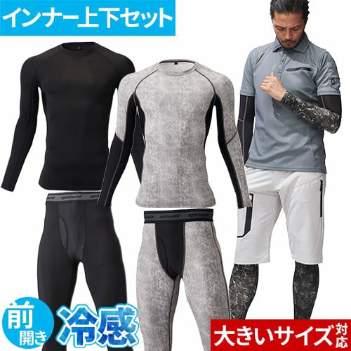 他の画像を見る 冷感インナー 上下セット メンズ 作業服 接触冷感 コンプレッション アタックベース 夏用インナー 長袖 加圧 冷感 アンダーシャツ ロングパンツ 前開き 消臭 抗菌 吸汗 速乾 ストレッチ 加圧スパッツ 作業着 大きいサイズ 56615 56815 特別価格 ¥ 2,200 税込 冷感&軽量インナー上下セット汗をかきやすい夏場にシンプルで万能なベースレイヤー ・ひんやり爽やかな接触冷感・消臭テープで気になる臭いを防ぎます・いつでもカラっと過ごせる吸汗速乾・着圧サポートで無駄な筋肉の揺れを防ぎ、抜群のストレッチ性で作業性も良好です。 詳細を見る お気に入りに登録する