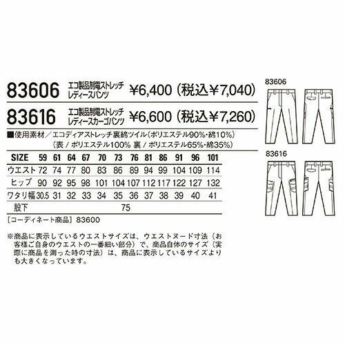 他の画像を見る 作業服 レディース パンツ 自重堂 Field Message エコ製品制電ストレッチレディースパンツ 83606 作業着 通年 秋冬 エコマーク ストレッチ 防汚加工 帯電防止 消臭 抗菌 男女共用 特別価格 ¥ 3,971 税込 〜 特別価格 ¥ 税込 SDGsの達成に貢献できる環境配慮型のワークウェア植物由来PET繊維「エコディア」使用 詳細を見る お気に入りに登録する