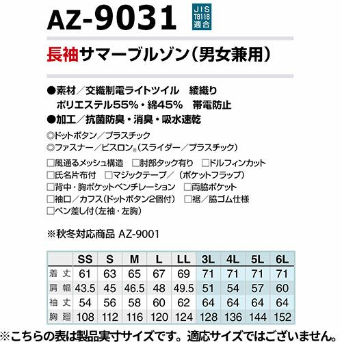 他の画像を見る アイトス AZ-9031 長袖サマーブルゾン AITOZ 作業服 作業着 ワークウエア ジャケット アウター 春夏 メンズ レディース 男女兼用 ワークウェア 帯電防止 抗菌 防臭 消臭 吸汗 速乾 通気性 特別価格 ¥ 6,010 税込 〜 特別価格 ¥ 税込 部屋干しできるワークウェア、オンリーアイトス時乾短縮。帯電防止T8118適合商品。 詳細を見る お気に入りに登録する