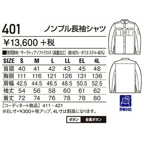 他の画像を見る 自重堂 DESK-WJ 作業服 401 長袖シャツ 春夏 メンズ 作業着 長袖 ワークウエア ワークシャツ 特別価格 ¥ 8,877 税込 〜 特別価格 ¥ 税込 「ノンプル」仕様が腕のつっぱり感を解消。 素材感、着心地ともハイクオリティを追求したひとクラス上のユニフォーム。 上質なインド綿ならではのナチュラルでしなやかなドレープ性と「ノンプル」の優れた運動性が好評のロングセラー商品。 詳細を見る お気に入りに登録する