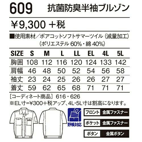 他の画像を見る 自重堂 DESK 作業服 609 半袖ブルゾン 春夏 メンズ 作業着 ワークウエア ブルゾン 特別価格 ¥ 5,973 税込 〜 特別価格 ¥ 税込 人気を独占し続ける、支持率ナンバーワンのベストセラー。 すべてのワーカーが惚れ込んだ、ワーキングデザインの基本形とも呼べるシリーズです。耐久性とソフトな着心地を両立させた価値ある一着です。 詳細を見る お気に入りに登録する