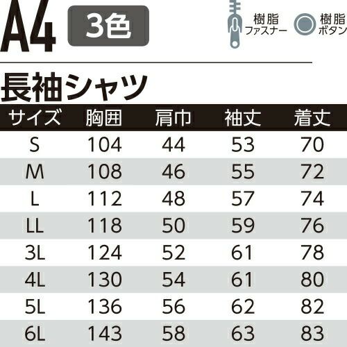 他の画像を見る 作業服 長袖シャツ Asahicho 旭蝶繊維 長袖シャツ A4 作業着 春夏作業着 作業服 長袖シャツ 春夏 特別価格 ¥ 5,995 税込 〜 特別価格 ¥ 税込 抗菌防臭で爽やかな着心地!素肌に気持ちいい、快適清涼素材!! 詳細を見る お気に入りに登録する