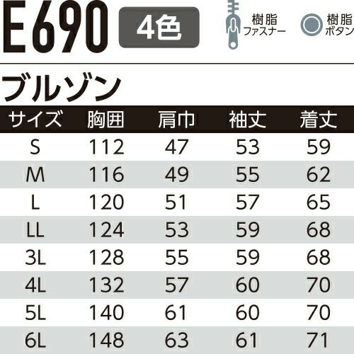 他の画像を見る 作業服 ブルゾン Asahicho 旭蝶繊維 ブルゾン E690 作業着 通年 秋冬作業着 作業服 ブルゾン 上着 おしゃれ かっこいい 人気 企業 法人 ワーク 作業 工場 外作業 ワークユニフォーム 仕事 土木 工事 現場 特別価格 ¥ 6,149 税込 〜 特別価格 ¥ 税込 ソフト加工×光触媒防汚加工 セーフティウェア(E790シリーズ 反射材付き)とコーディネート可能です。 詳細を見る お気に入りに登録する