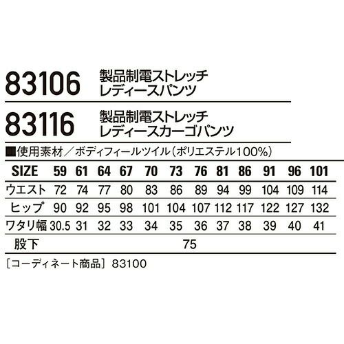 他の画像を見る 自重堂 作業着 作業服 レディースパンツ 製品制電ストレッチレディースパンツ 83106 通年 秋冬 2018年 新作 新商品 特別価格 ¥ 4,235 税込 ストレッチと製品制電もプラスし機能充実の男女ペアユニフォーム。 「汚れがつきにくい」と「汚れを落としやすい」を両立した防汚加工。 詳細を見る お気に入りに登録する
