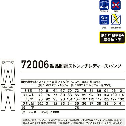 作業服 レディース パンツ 自重堂 Z-DRAGON 製品制電ストレッチレディースパンツ 72006 作業着 通年 秋冬作業着 作業服 レディースパンツ