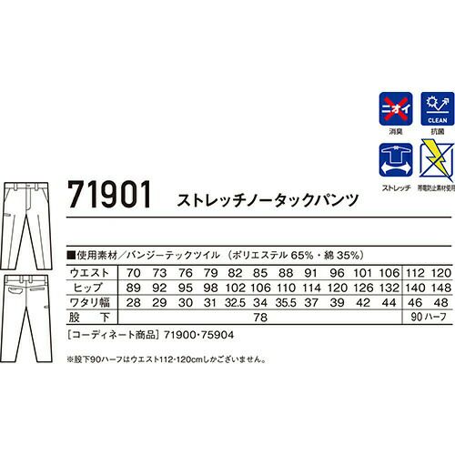 他の画像を見る ジーベック XEBEC 作業服 パンツ ズボン ノータックスラックス 1722 作業着 通年 秋冬 ストレッチ 撥水 耐久性 フルハーネス対応 製品制電 1720シリーズ 動きやすい おしゃれ かっこいい 人気 メンズ 2019秋冬新作 特別価格 ¥ 4,470 税込 〜 特別価格 ¥ 税込 快適な作業性と利便性!ストレッチ、制電(JIS T8118)、撥水、フルハーネスに対応した高耐久性ユーティリティワークウェア! ストレッチ性と丈夫さを兼ね備えた新開発TC制電ストレッチ素材を使用。フルハーネスをしたままでも使えるポケットやモノの落下を防止するファスナーポケットを装備。 詳細を見る お気に入りに登録する