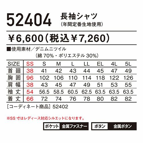 他の画像を見る 自重堂 Jawin 作業服 52404 長袖シャツ 通年 定番 メンズ 作業着 長袖 ワークウエア 秋冬 ワークシャツ 特別価格 ¥ 4,664 税込 〜 特別価格 ¥ 税込 ジーニングテイストなカジュアルワークウエア。 デニム調の素材感がカジュアルな雰囲気を醸し出す。 ジーニングテイストのデザインとこだわりの附属使いが特長の新シリーズ。 詳細を見る お気に入りに登録する